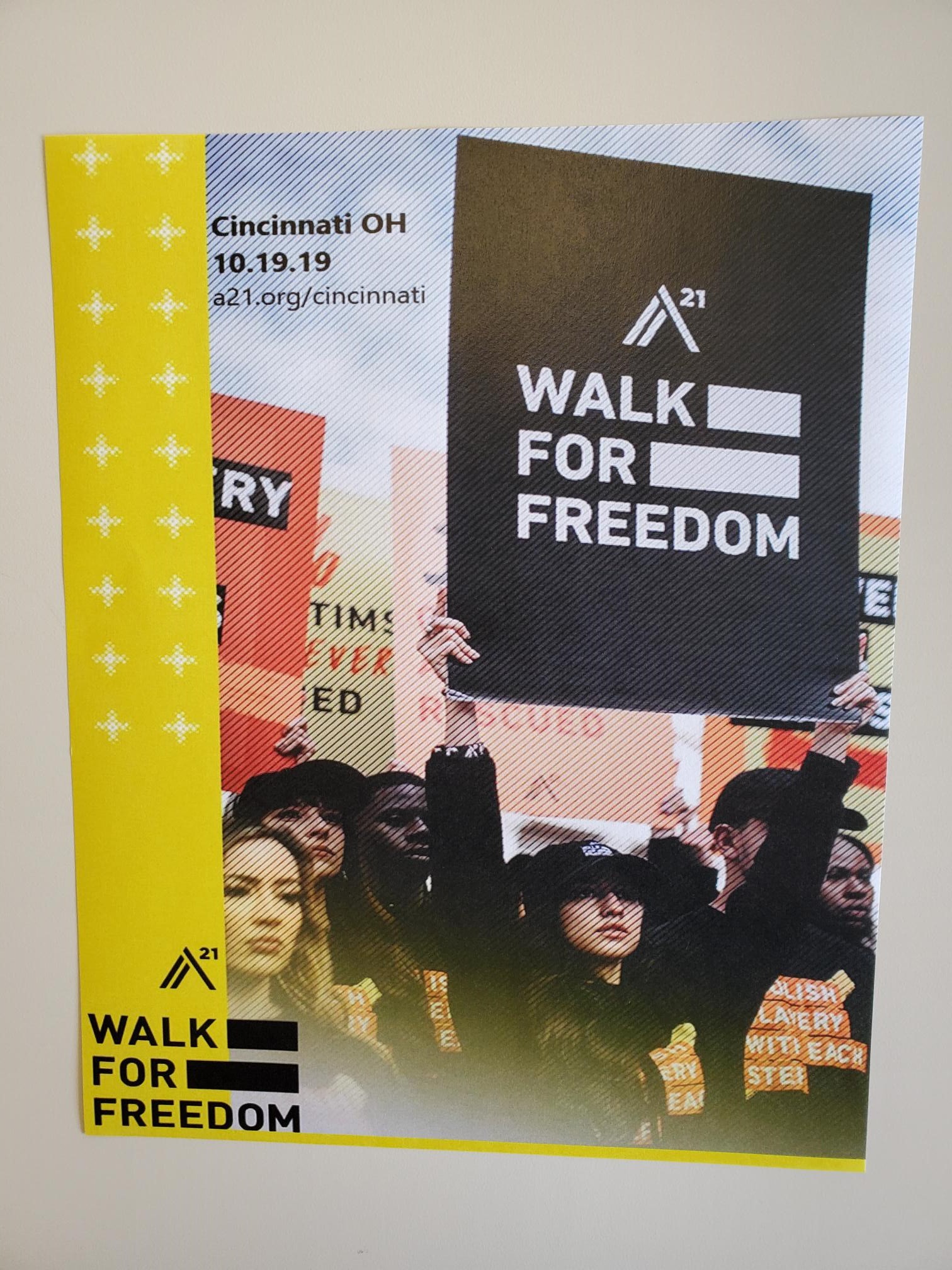 A21 fights human and labor trafficking around the globe. Their "Walk For Freedom" is a short, silent walk intended to raise funds and awareness for victims and survivors of modern-day enslavement.